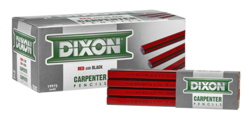 Known to carpenters the world over, Dixon's carpenter's pencil deposits a long-lasting, smooth and rich black mark. These red pencils with black stripes are easy to see and sharpen. The pencils feature a soft graphite core.